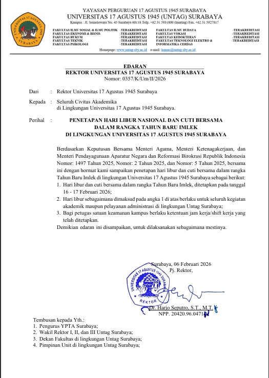Dibaca 93 CALON LULUSAN UNTAG SURABAYA DIDORONG UNTUK BERANI BERKOMPETISI MENGISI LOWONGAN KERJA DI MANCANEGARA